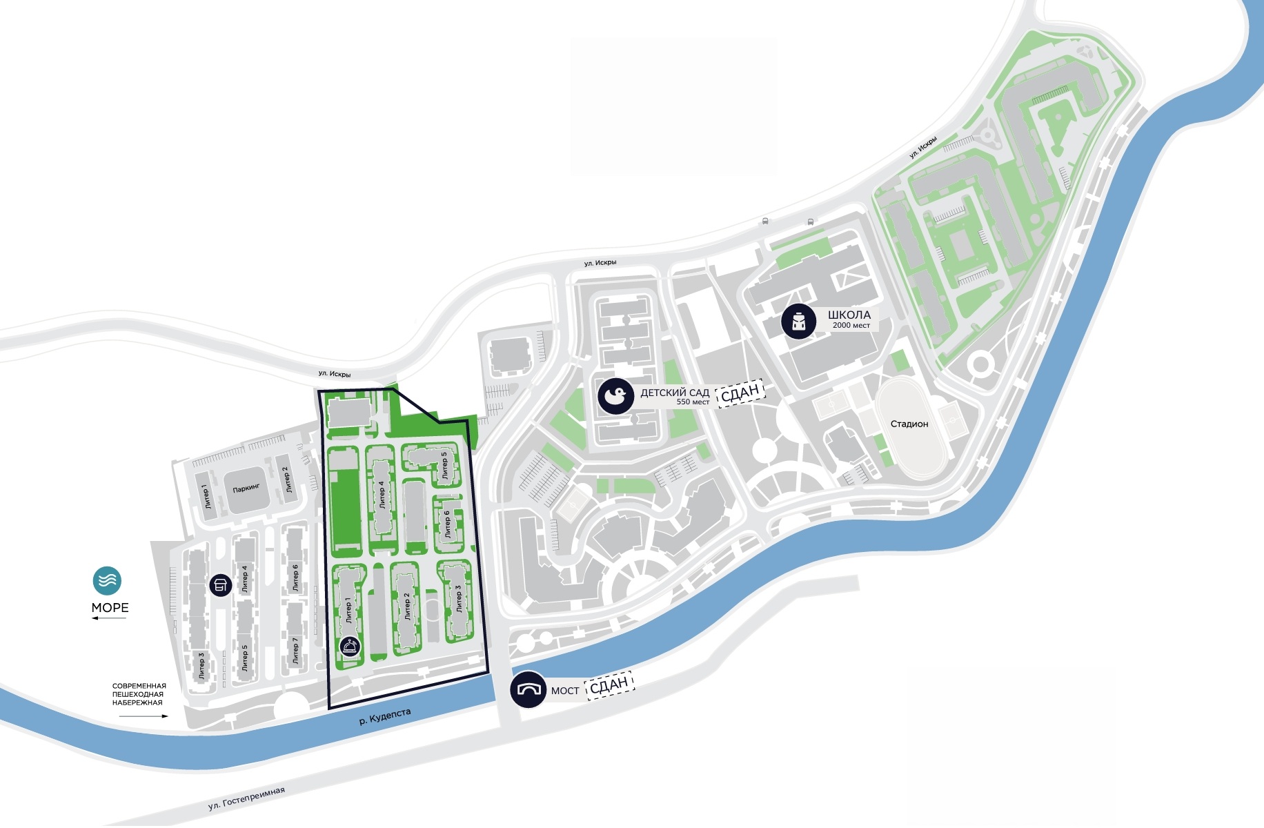 Жилой комплекс в Сочи в 10 минутах от моря с видом на реку и парк